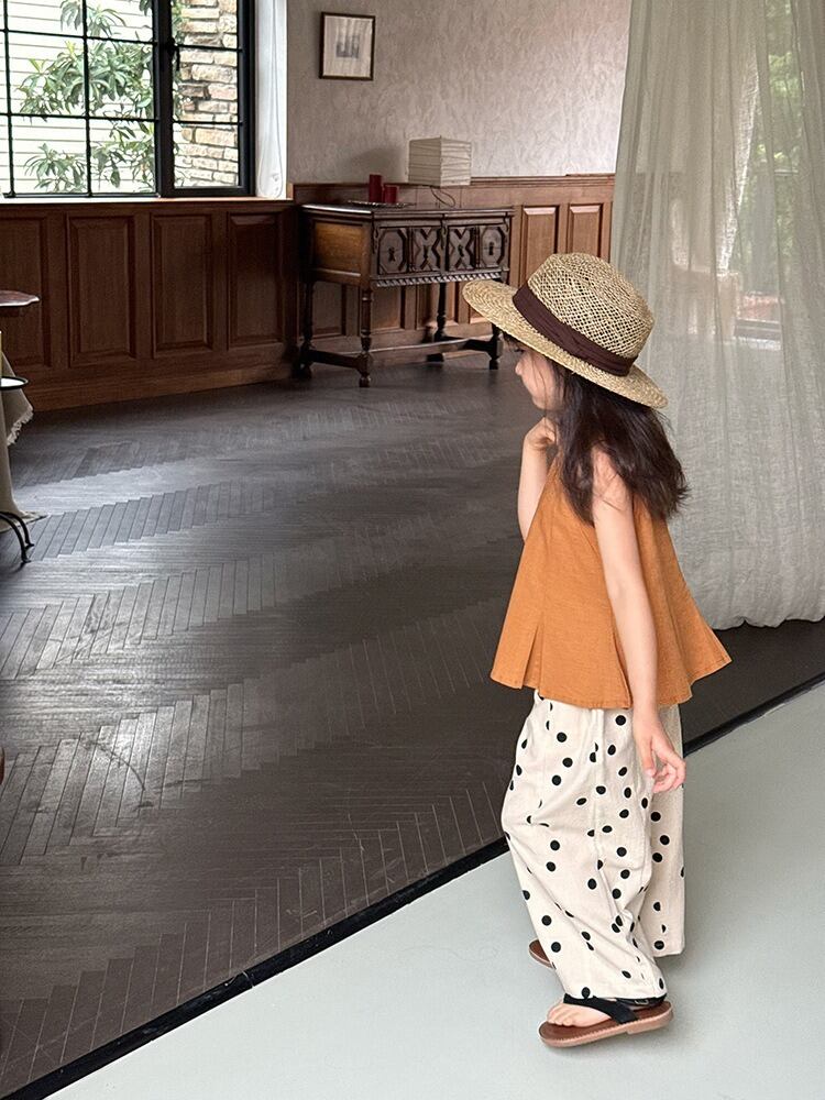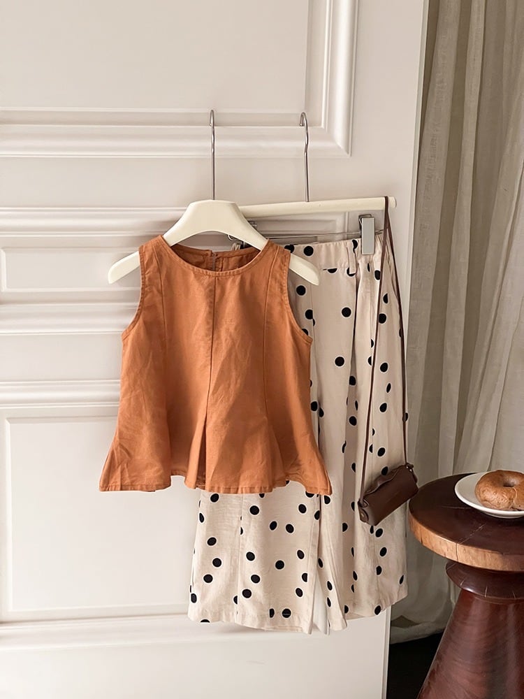 【予約販売】90-150cm ノースリーブ&ドットワイドパンツセットアップ