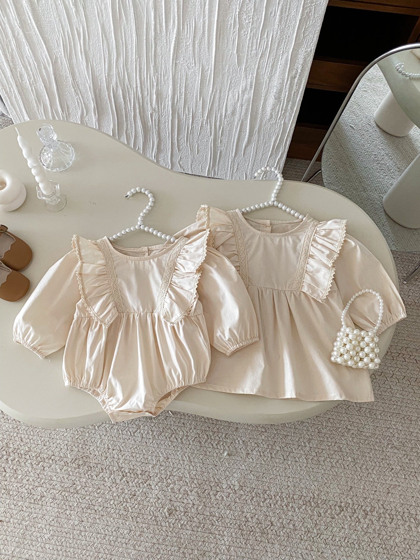 ふんわりフリルとレースが可愛い、新作ロンパース&ワンピース。
