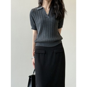 【予約販売】ケーブル編みポロニットトップス(FREEサイズ)