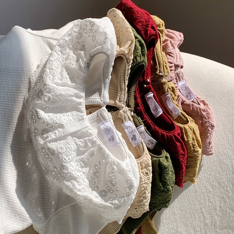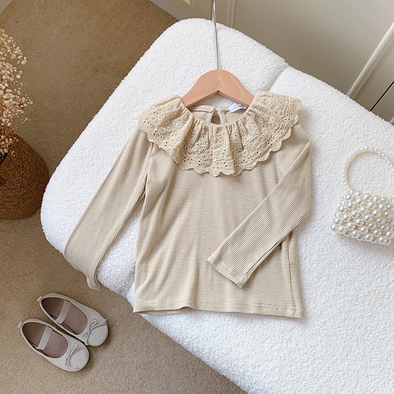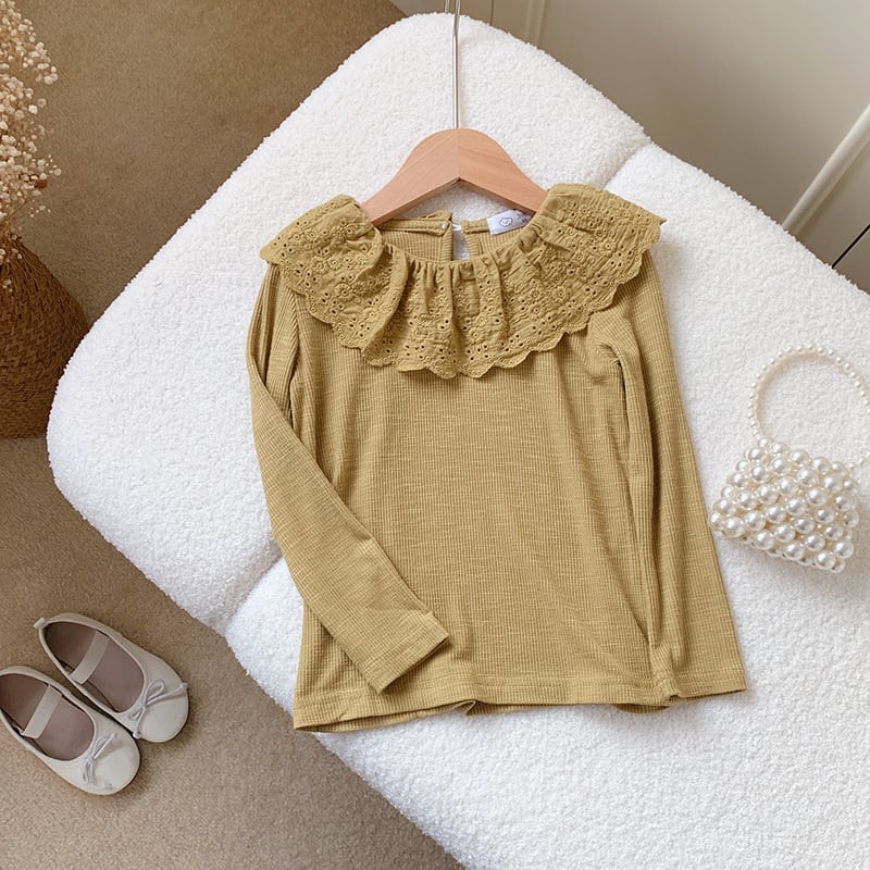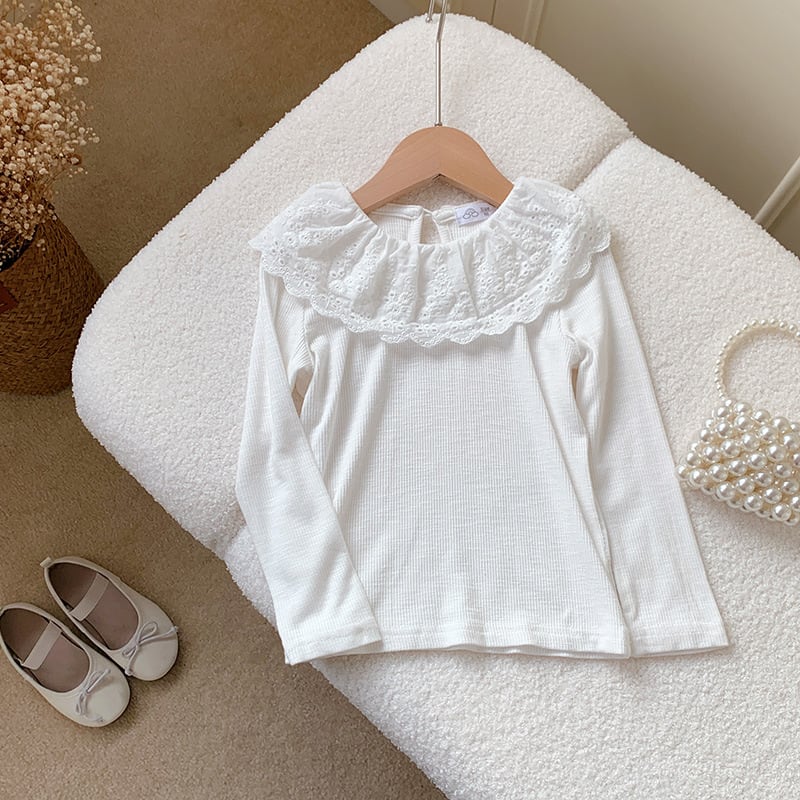 大きめのレース襟が目を惹く、ガーリーな長袖トップス。