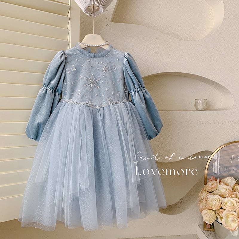 【予約販売】90〜140cm プリンセス風チュールドレス 長袖