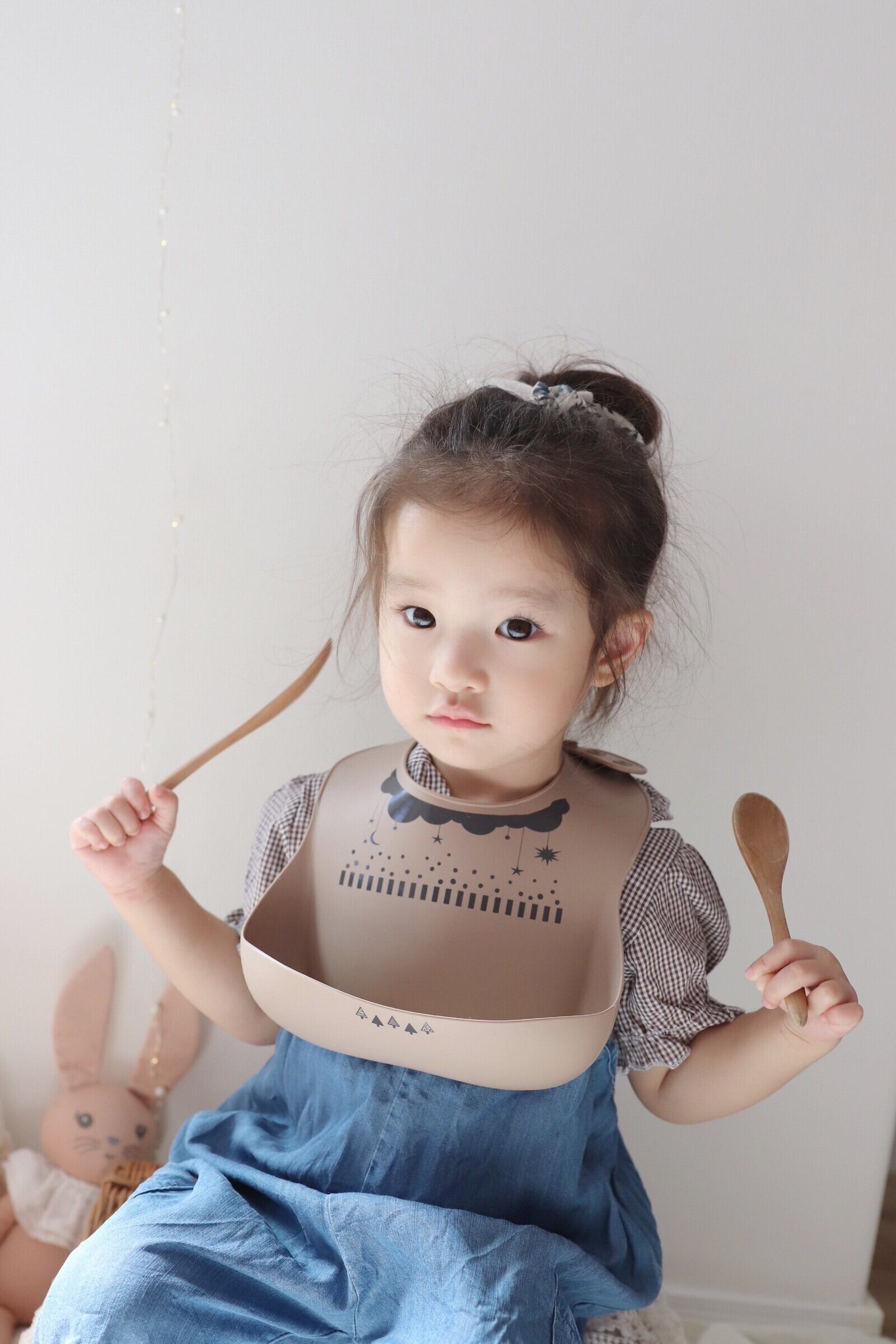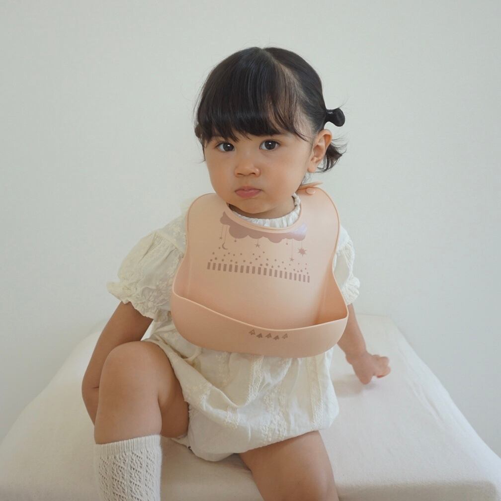 柔らかくオシャレな色味のベース地に自然をモチーフとしたシンプルで優しいデザインの入ったビブ。