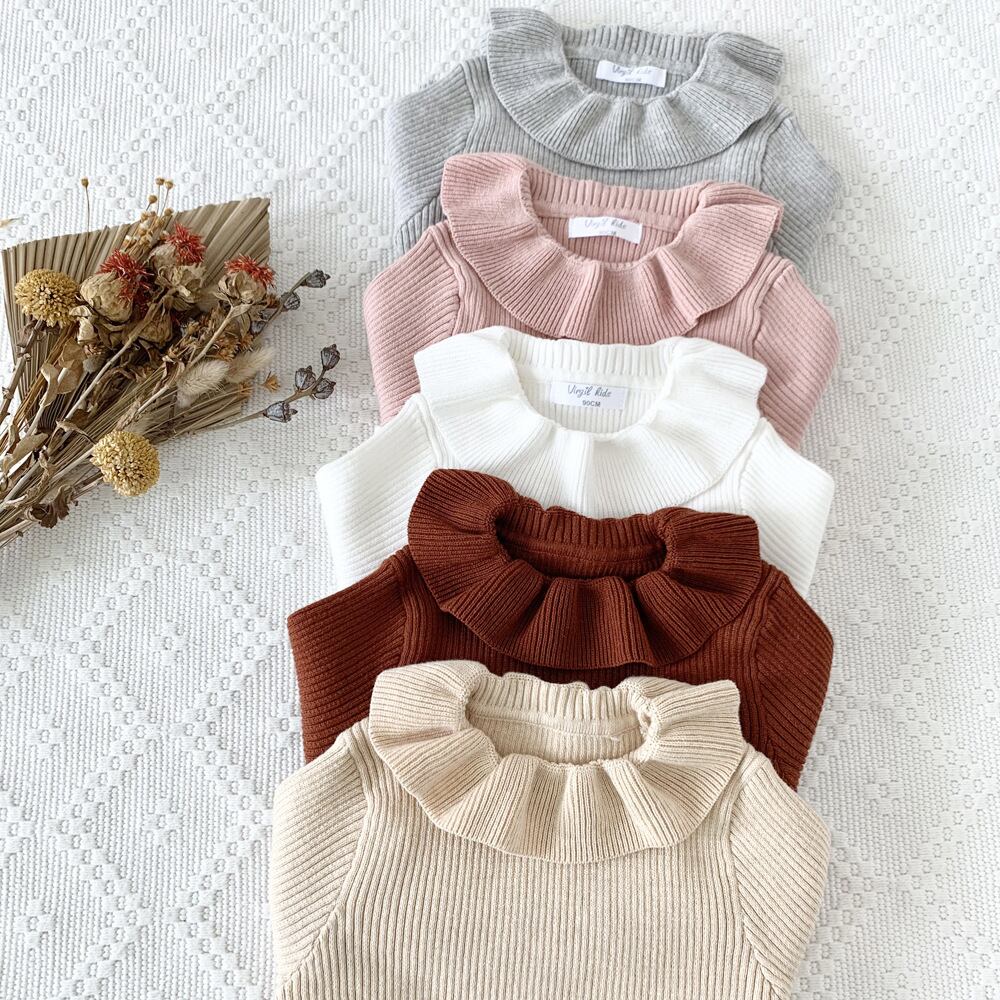 [80~130cm]【在庫セール!】40%off[ 新作 ] [ 即納 ] 5色フリル襟ニットセーター 秋冬 定番