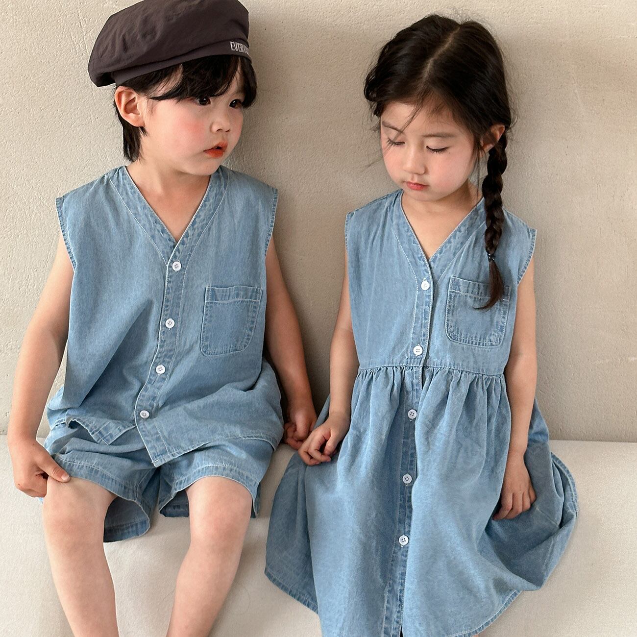 「予約」80-150cm お揃いコーデ 子供 夏 デニムスーツ 男の子 夏服 カジュアル ベビー 女の子 兄弟姉妹衣装
